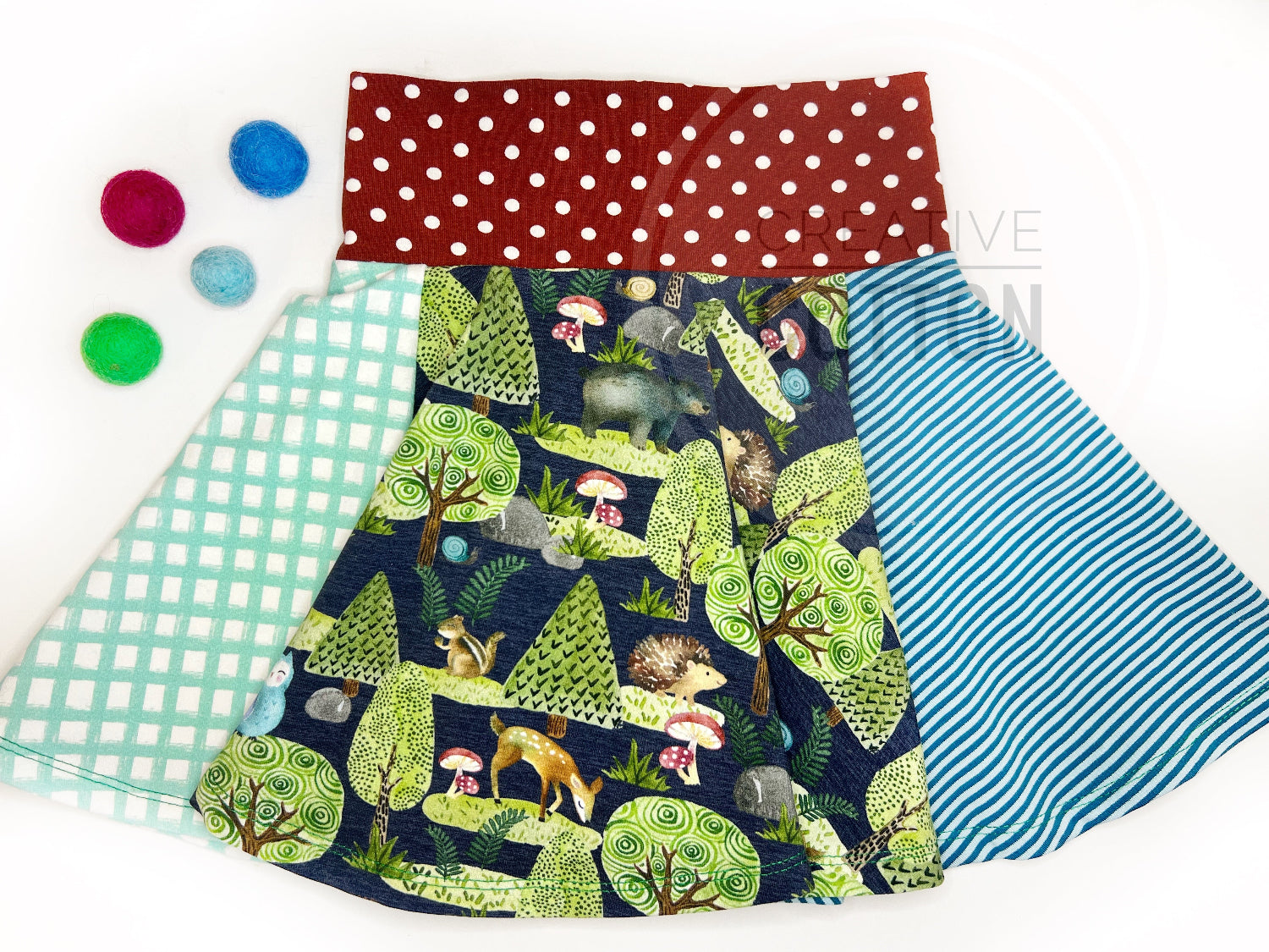 Our skirts for are made of European organic cottons and specialty artist-drawn prints unlike anything available in conventional retail. Our unique combination of spandex blends and pattern sizing means that our women's skirts are created in a range of sizes, not a single size. This also means your little is able to wear our skirts much longer than traditional sizing. Hello, grow-with-me-sizing! 🤎