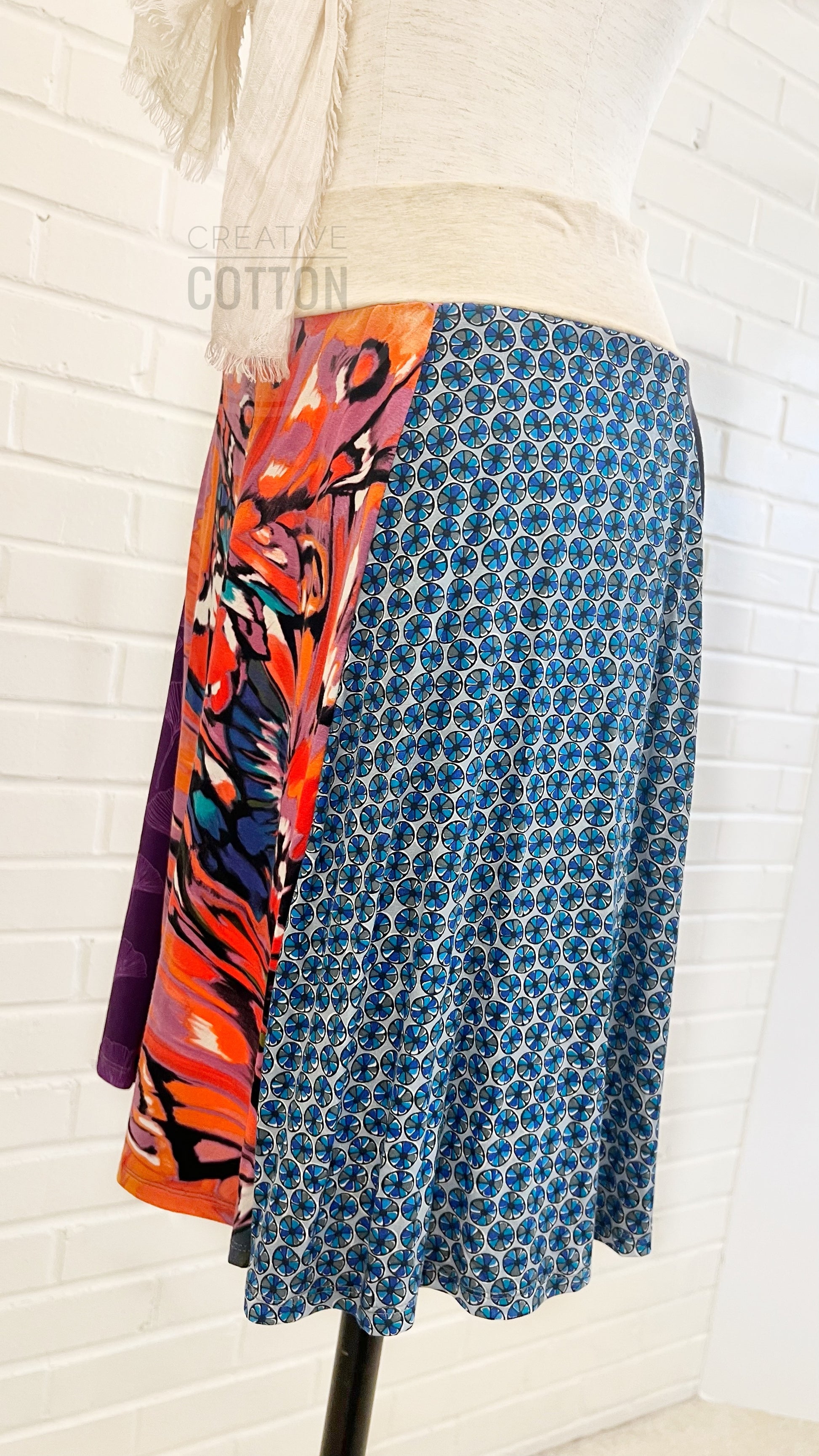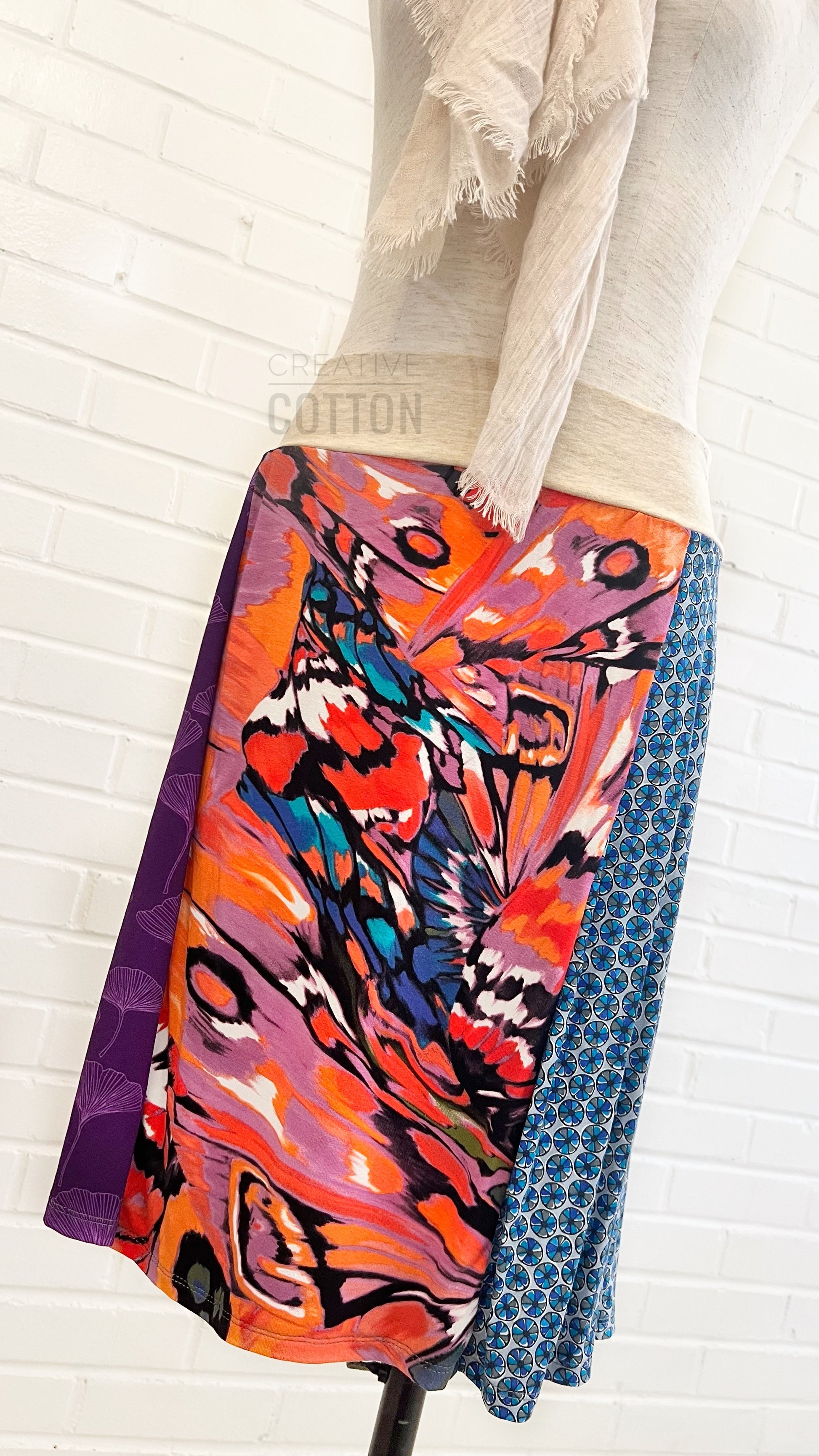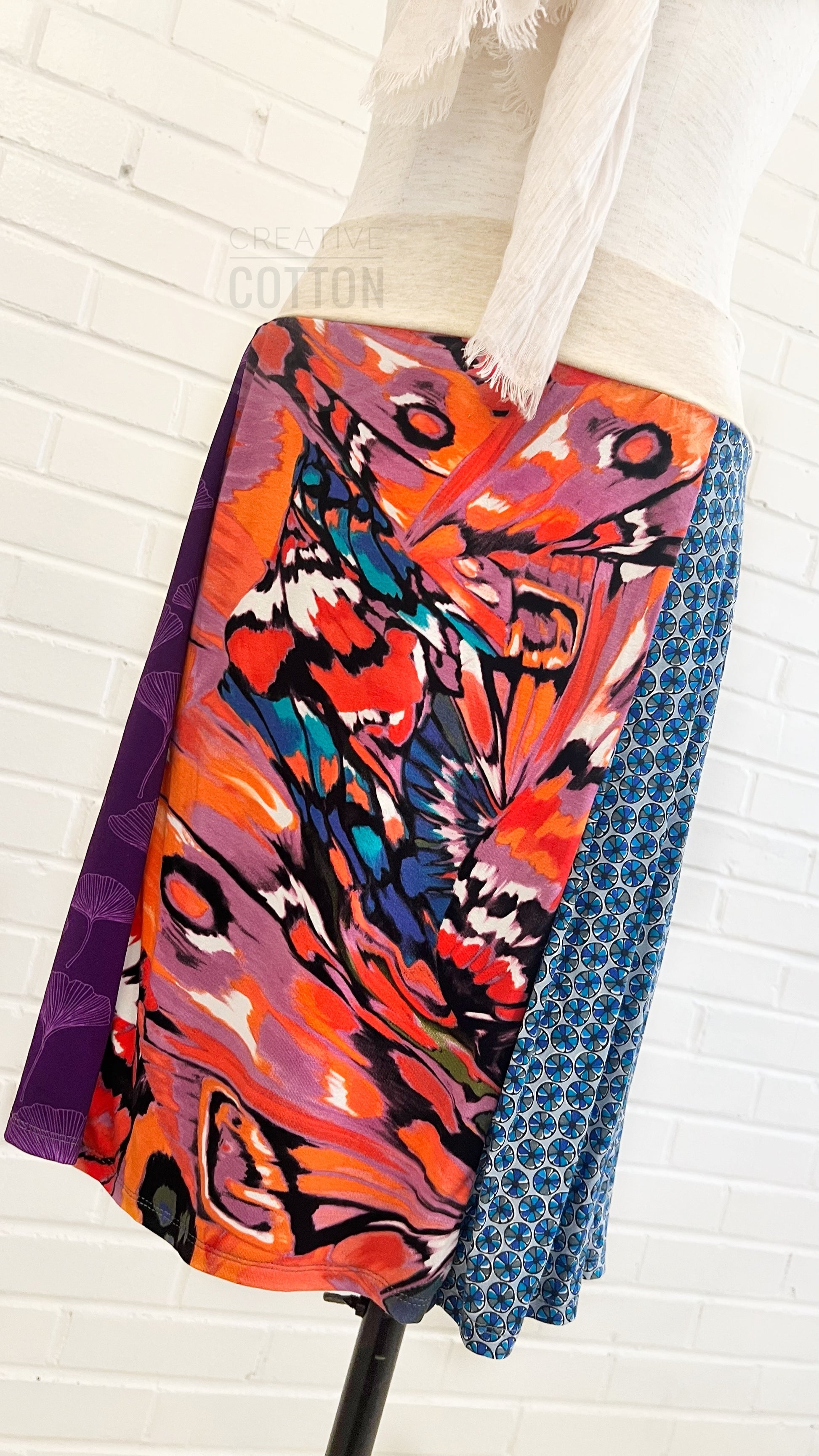 This skirt is all things hip, chic, lovely, and sweet. Super stretchy rayon lycra waistband.