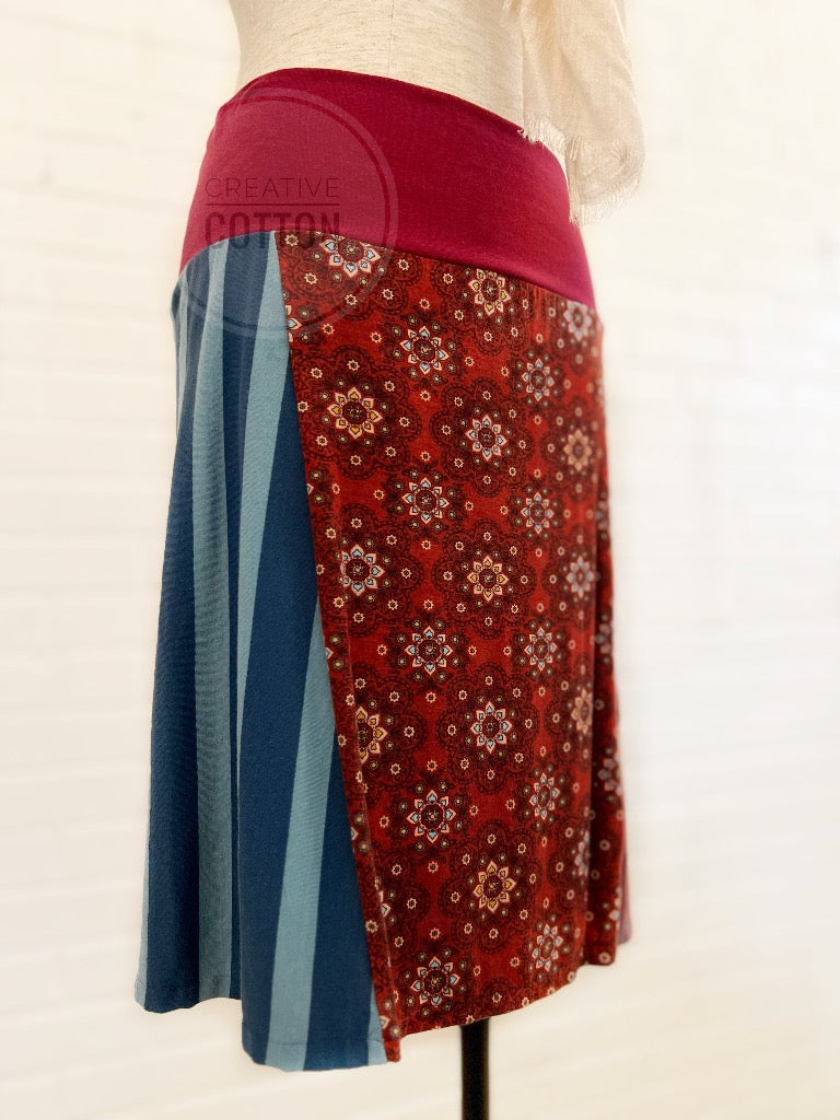 This skirt is all things hip, chic, lovely, and sweet. Super stretchy rayon lycra waistband.