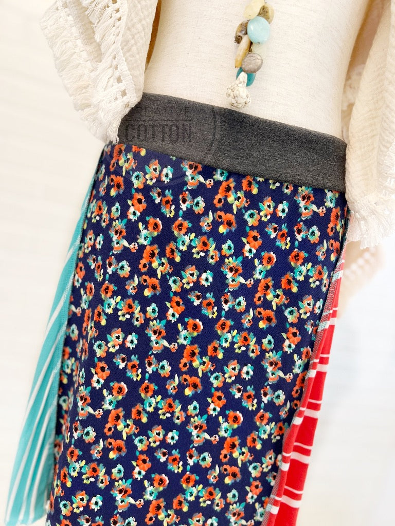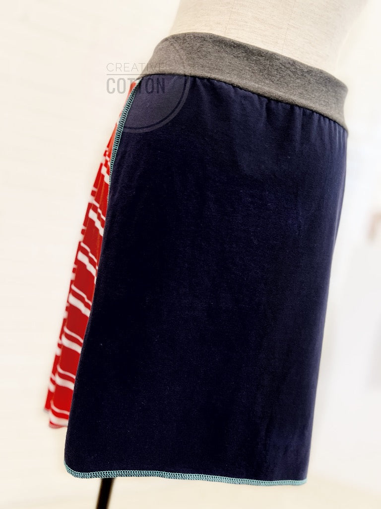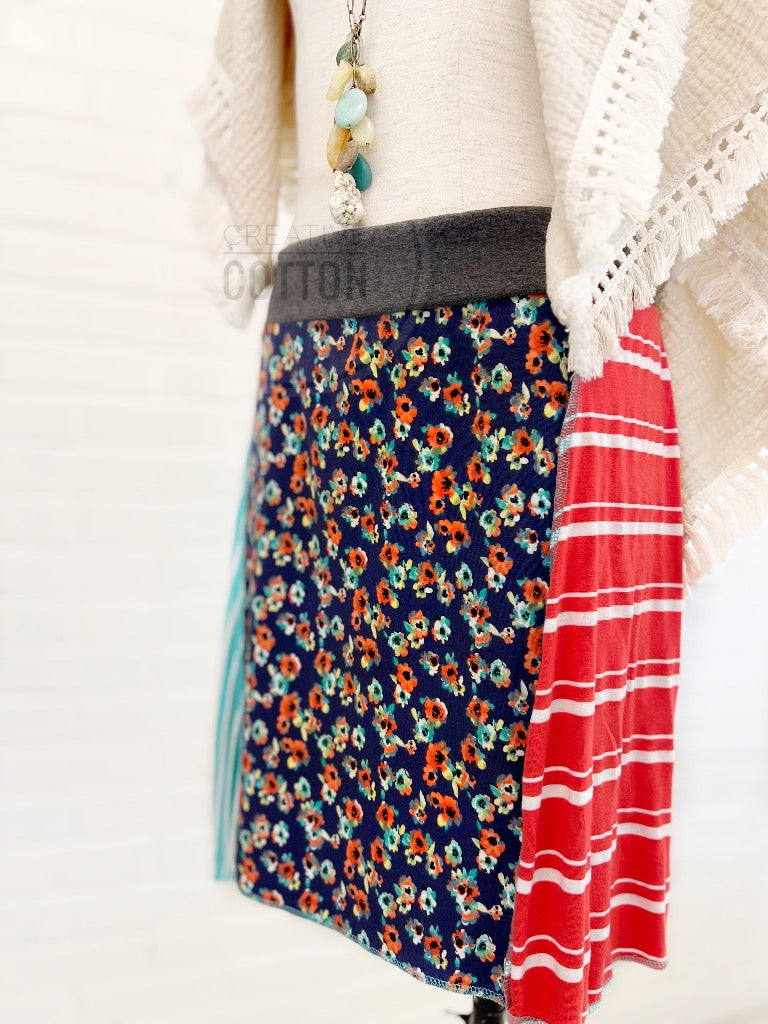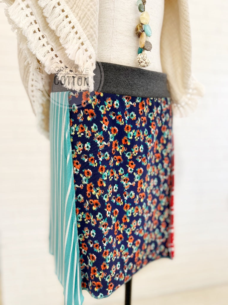 This skirt is all things hip, chic, lovely, and sweet. Super stretchy rayon lycra waistband.