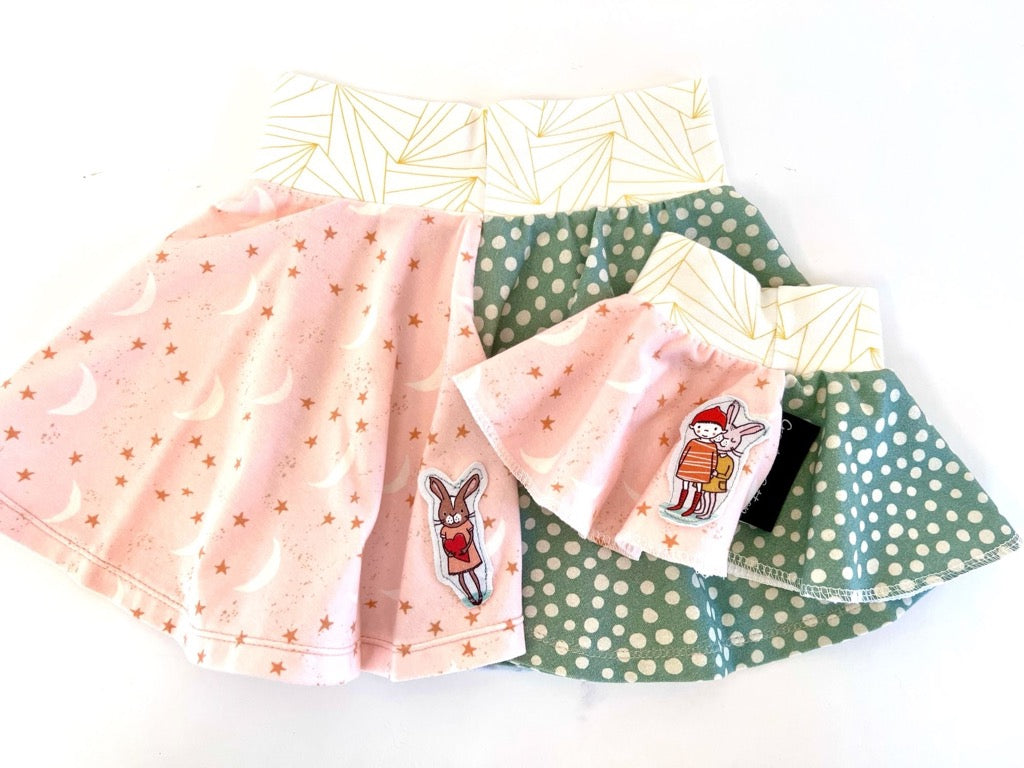 She's made from European organic cottons. Designed to fit any 18" doll, like the American Girl Doll. Features an applique from the featured fabric, just like the matching girls twirl skirt.