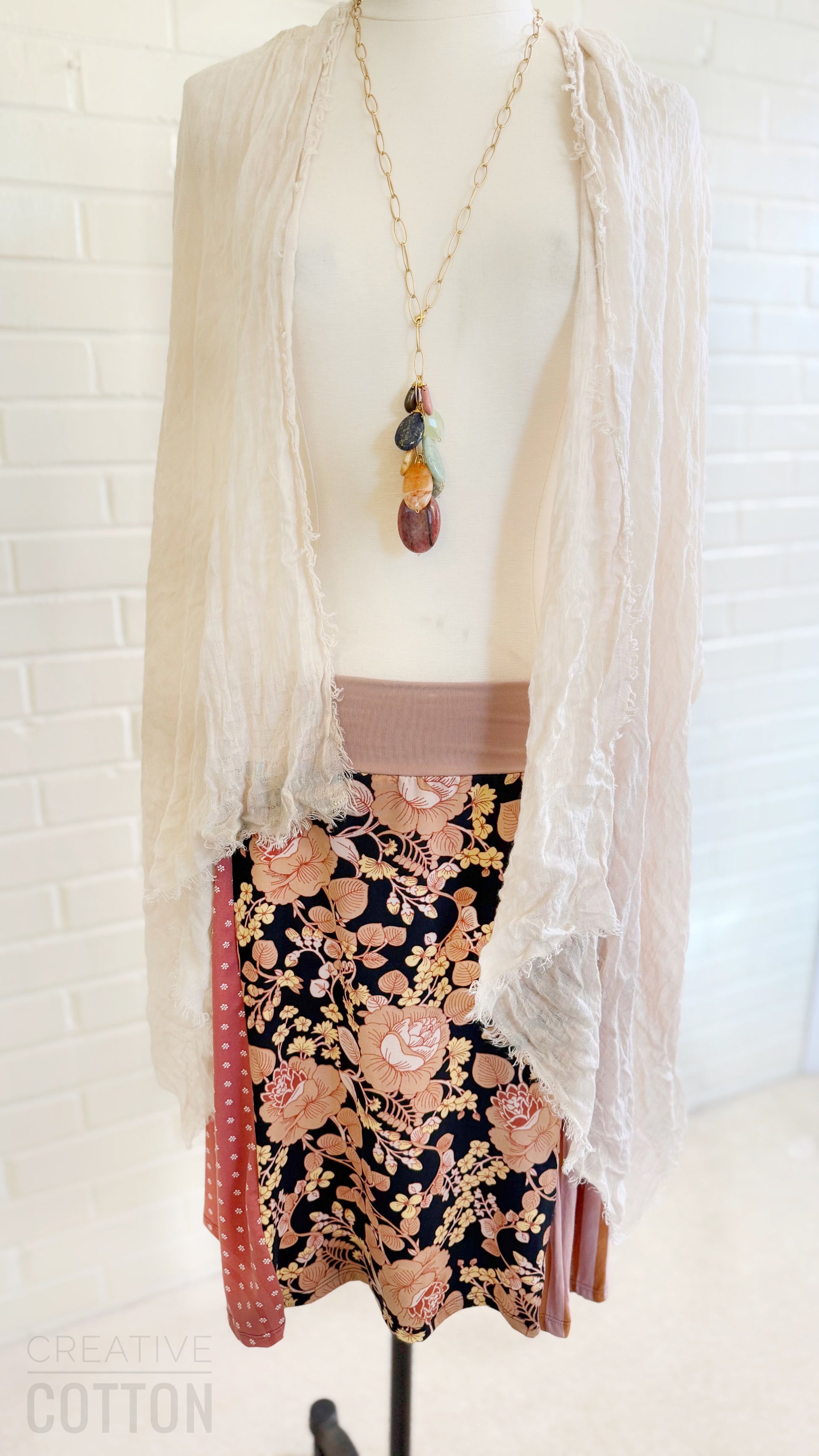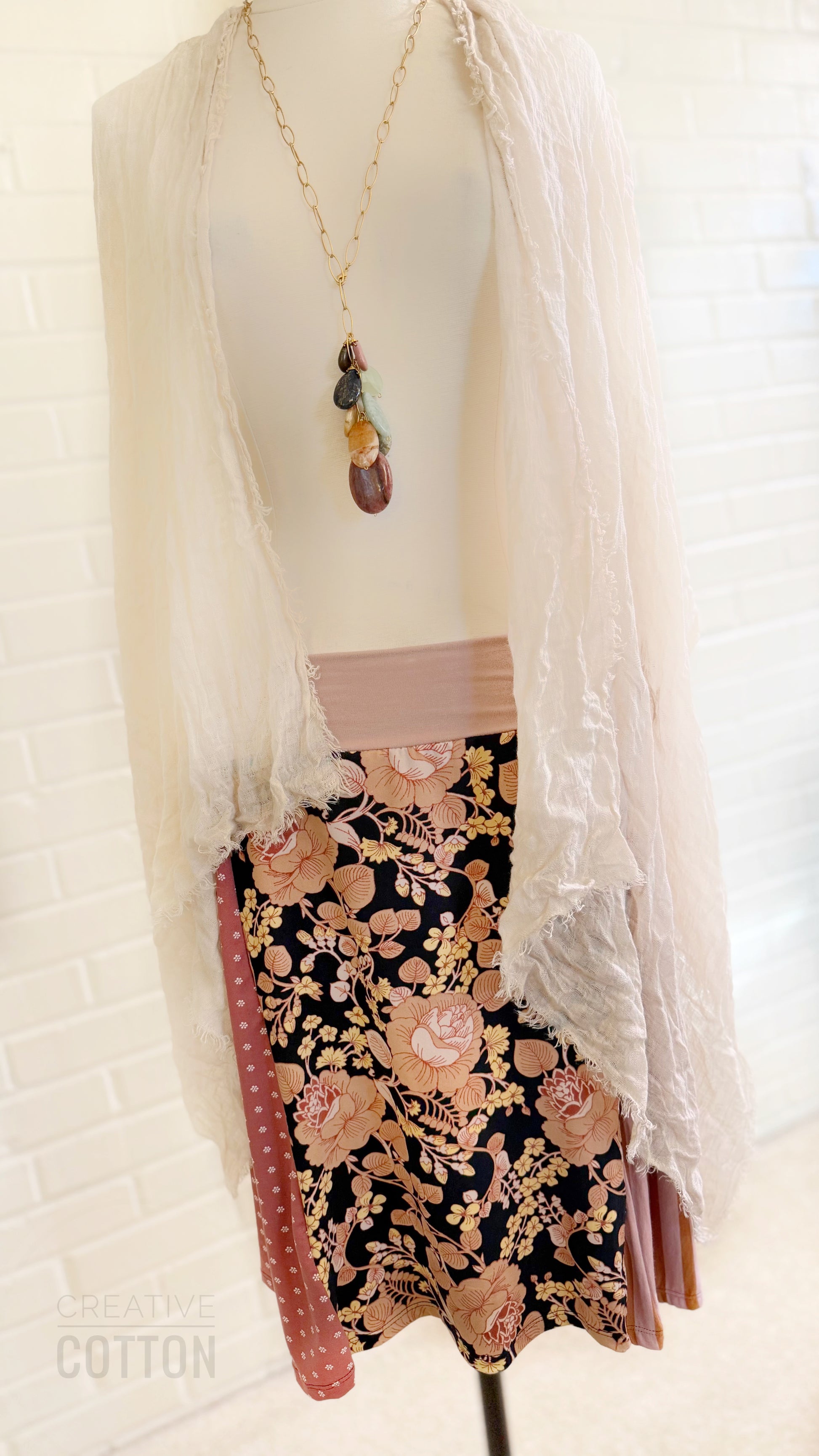This skirt is all things hip, chic, lovely, and sweet. Super stretchy cotton lycra waistband.