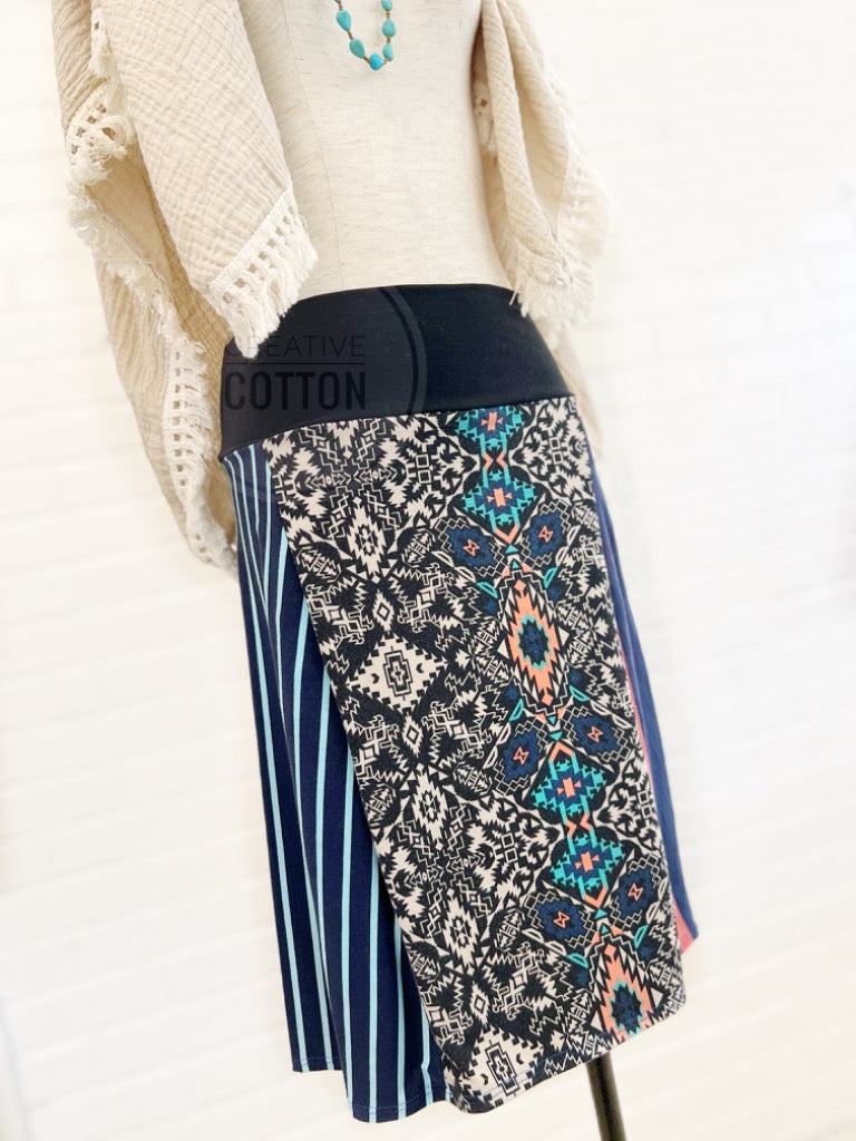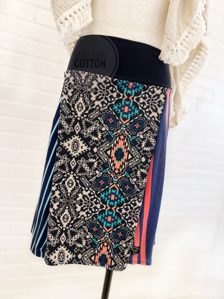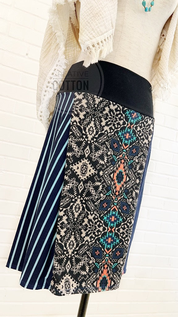 Navy Aztec Funky Knit Skirt