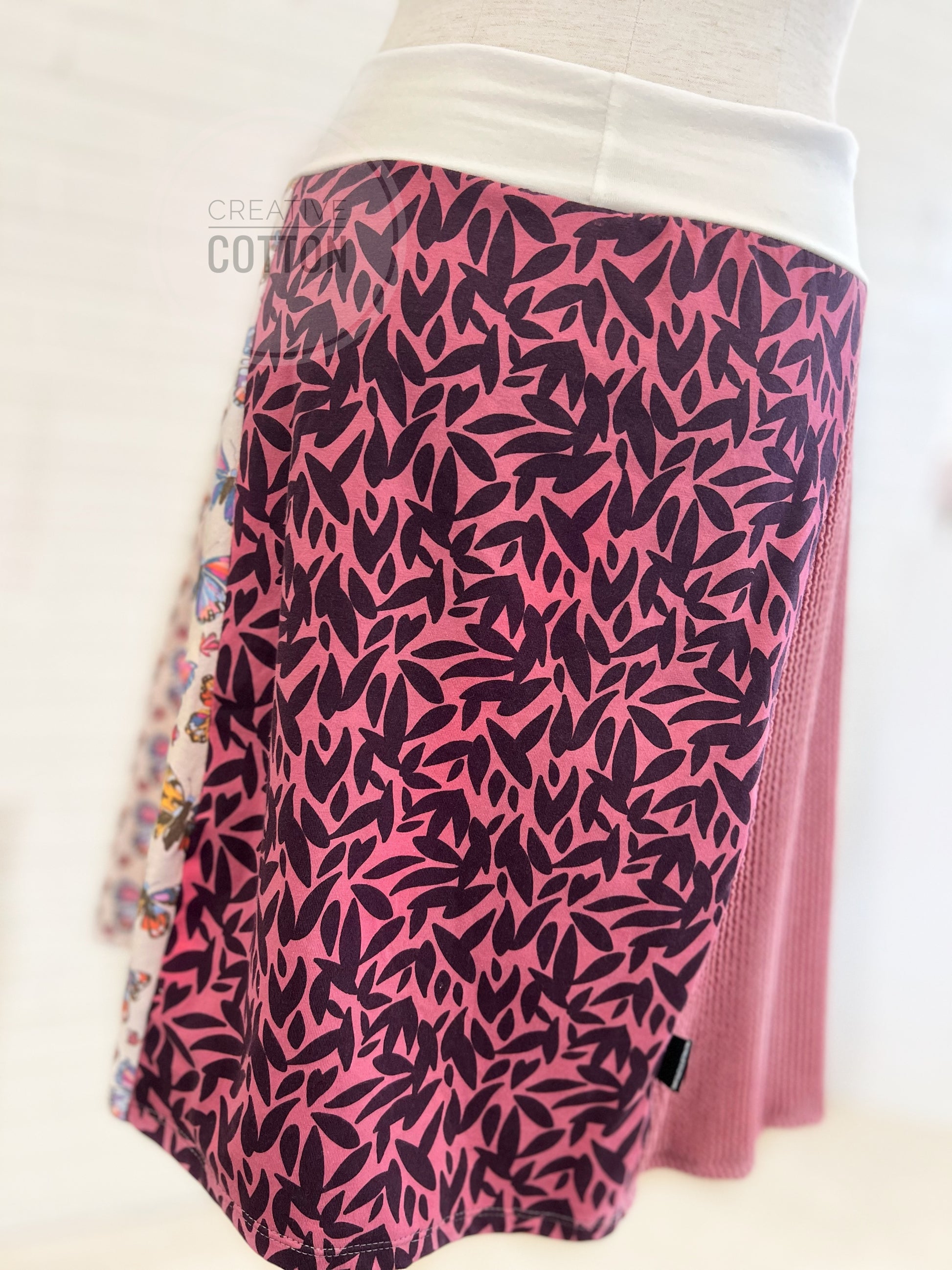 This skirt is all things hip, chic, lovely, and sweet. Super stretchy cotton lycra waistband.