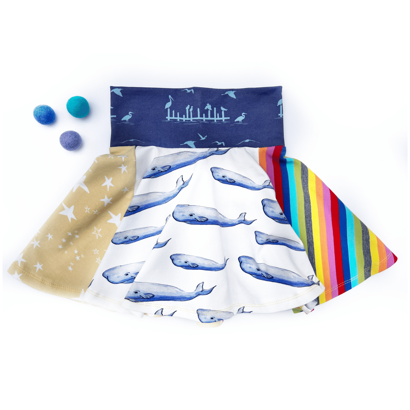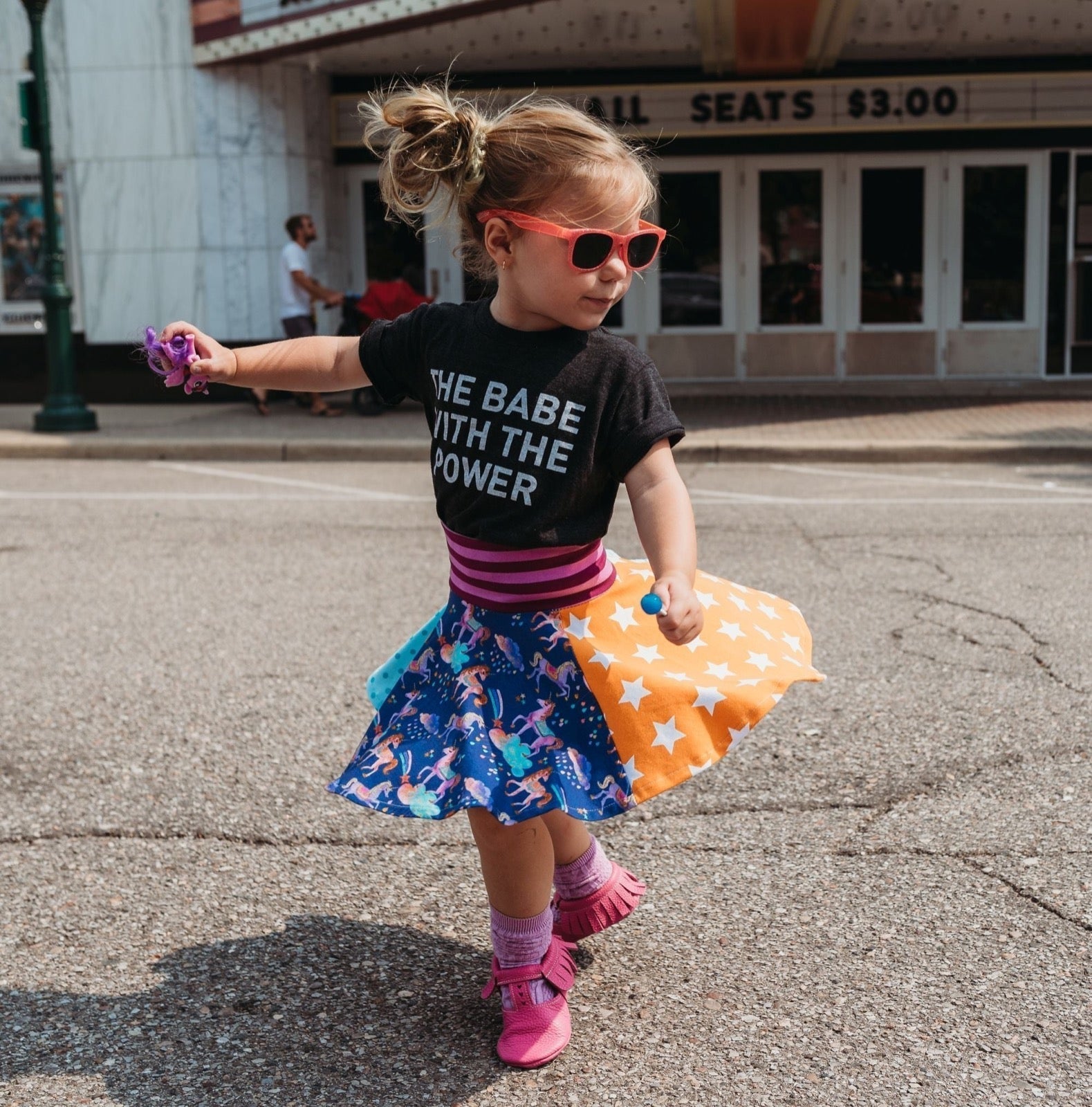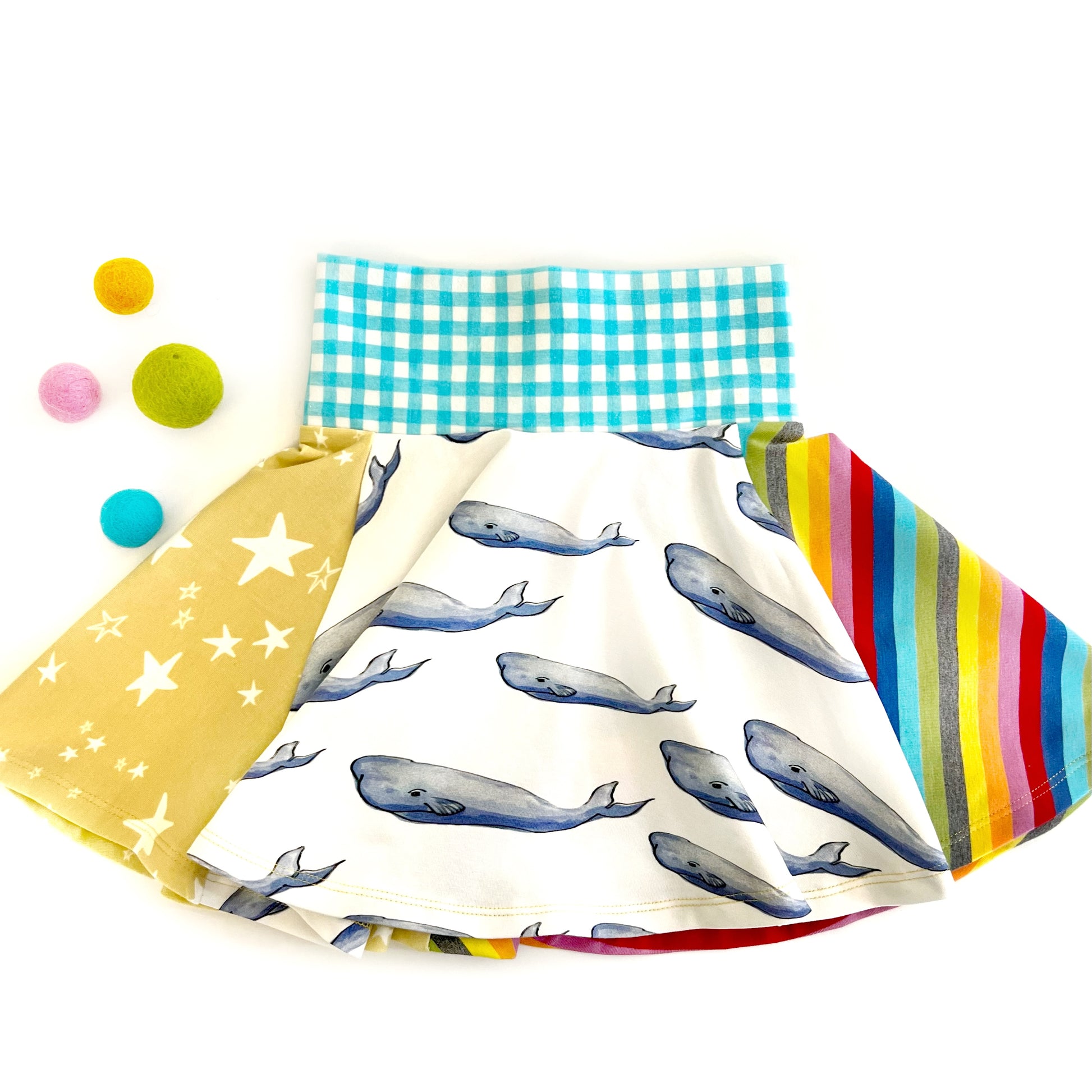 A little about sizing: If a baby will be wearing this skirt, a size small will almost certainly fit for 2-3 seasons. And if your sweetie is between sizes, always size UP! She’ll appreciate the added stretch as she grows. Twirl skirts are very true to size.